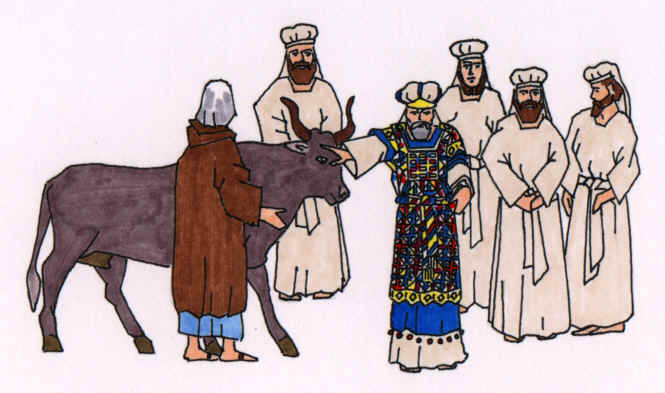 garments, and the anointing oil, and a bullock for the