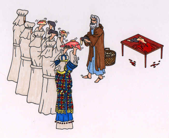 offering: and Aaron and his sons laid their hands