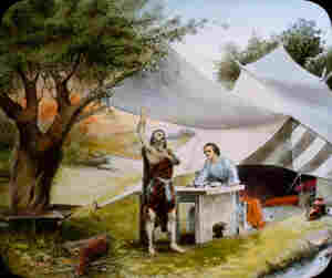 sur son oreiller de pierre et montant jusqu'au ciel ; des anges y