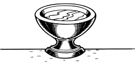 “庭”の中にある家具は、主として二つある。すなわち“銅の祭壇”と“洗盤”であって、各々には道具がついている。